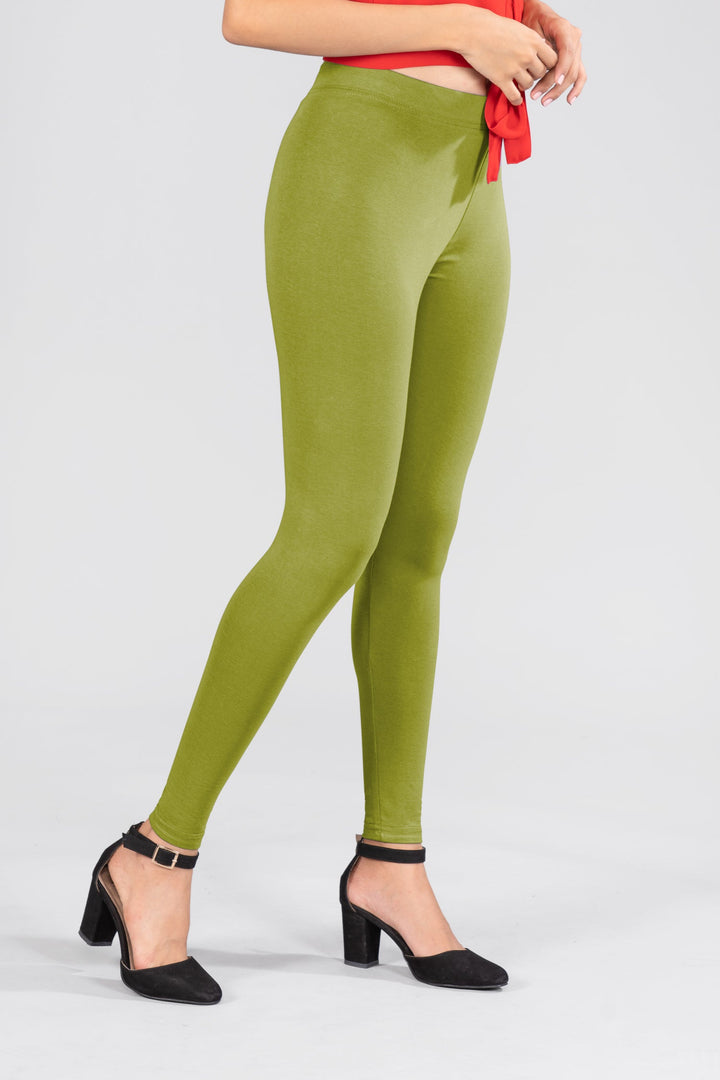 Go for a chic and earthy look with our Olive cotton Anklelength leggins. These leggings are versatile and complement Indian Flower patterns effortlessly.