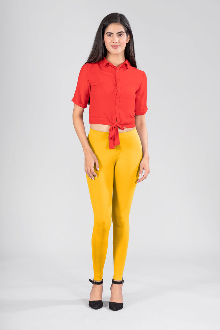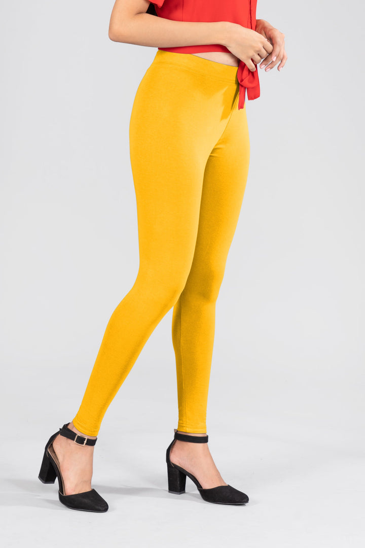 Shine bright in our Golden Yellow cotton Anklelength leggins. Pair them with Indian Flower-inspired tops for a radiant outfit that's sure to turn heads.