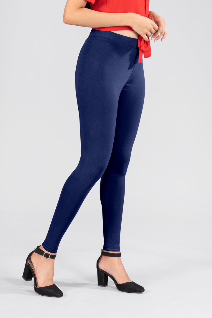 Achieve a classic look with our Navy cotton Anklelength leggins. These leggings are perfect for combining with Indian Flower accessories for a timeless style.