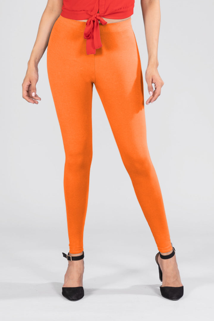 Go bold with our Orange cotton Anklelength leggins. Combine them with Indian Flower prints for a striking appearance.