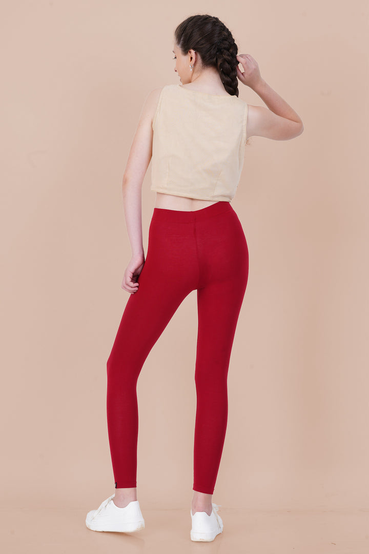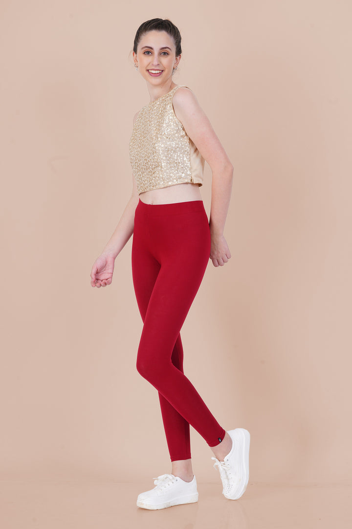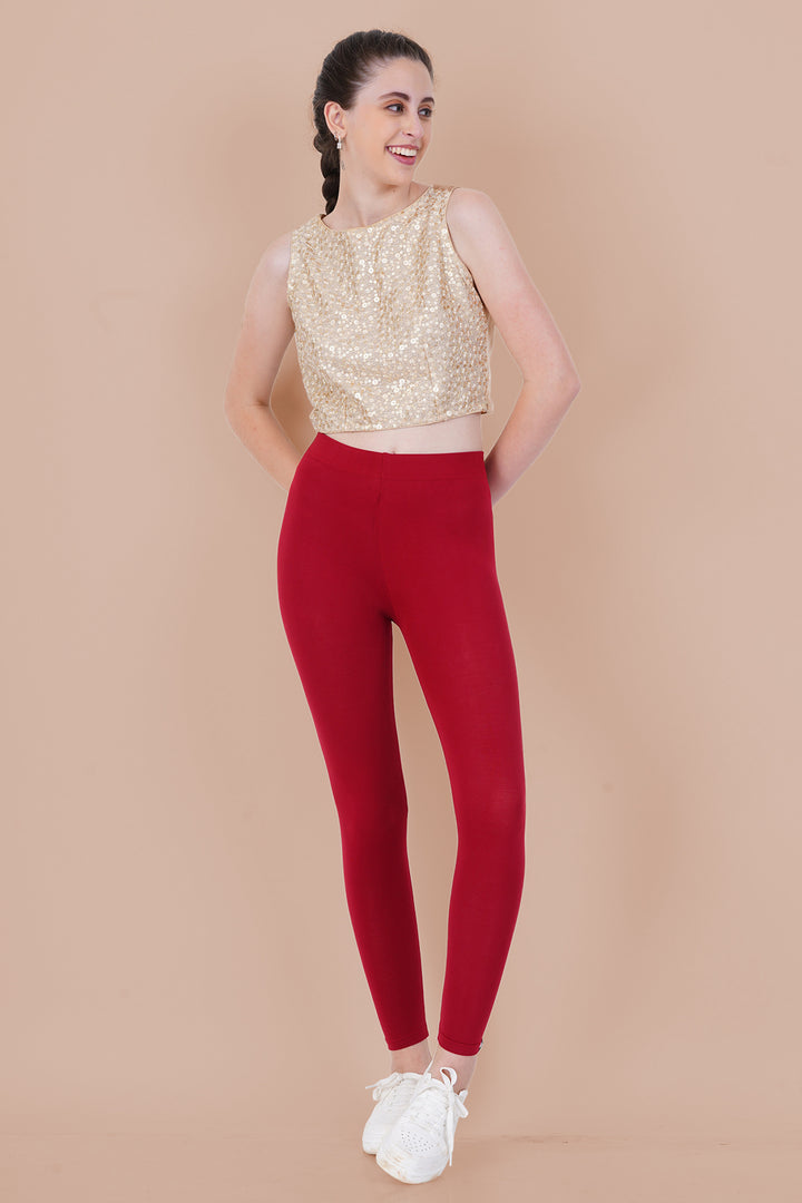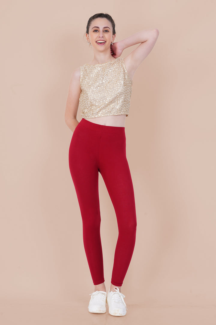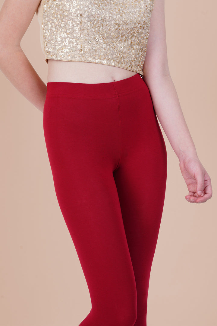 Add depth to your outfit with our Dark Red cotton Anklelength leggins. These leggings complement Indian Flower patterns beautifully.