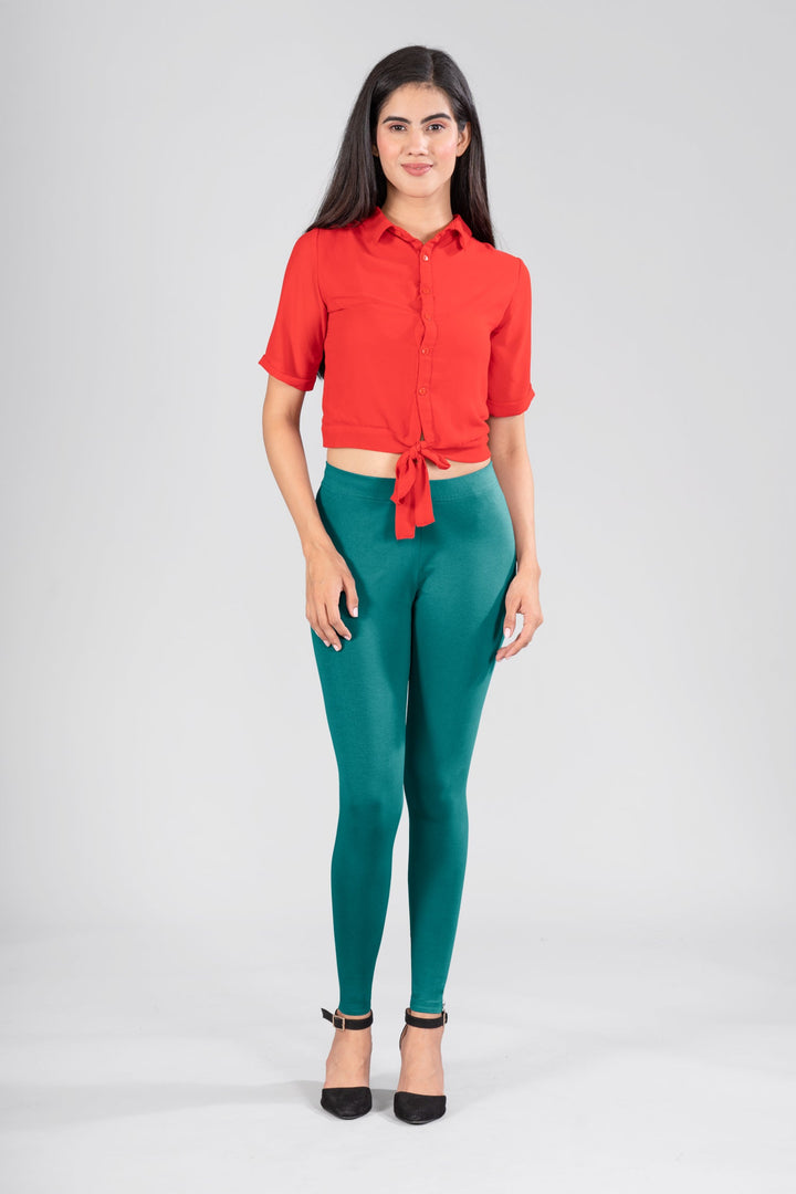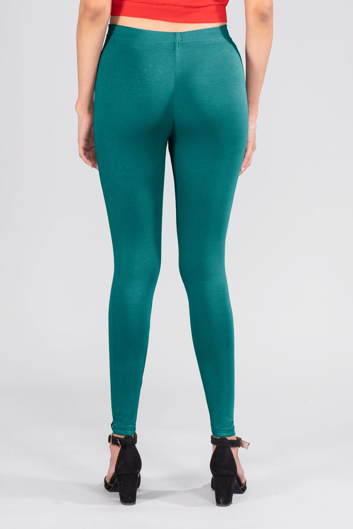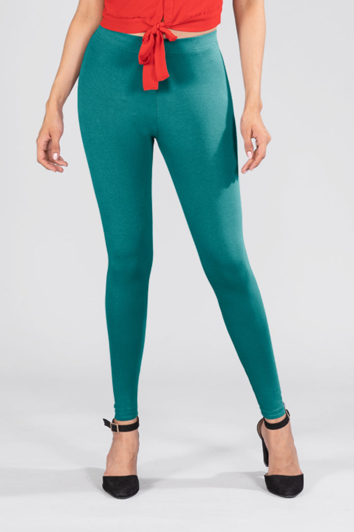 Peacock Green Cotton Ankle Leggings