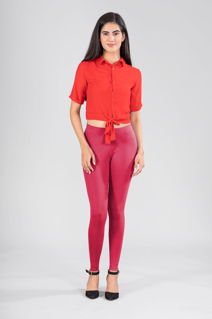 Go bold with our Dark Rani (Magenta) cotton Anklelength leggins. Combine them with Indian Flower accessories for a striking appearance.