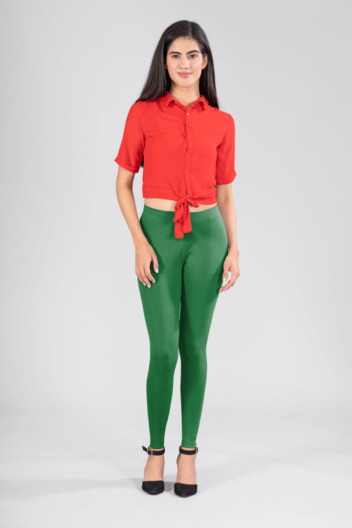 Add a touch of depth with our Dark Green cotton Anklelength leggins. Mix and match them with Indian Flower prints for a vibrant look.
