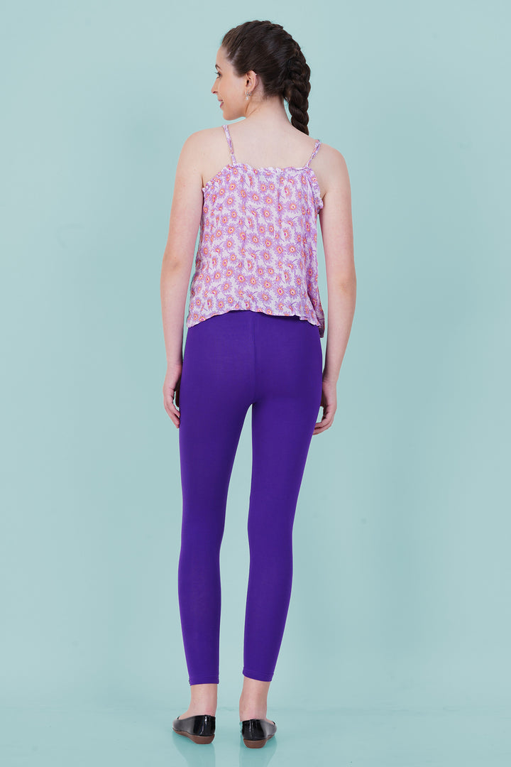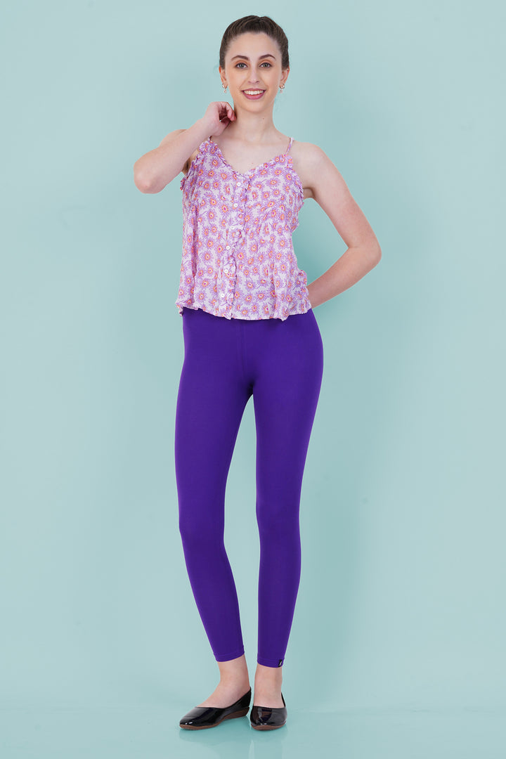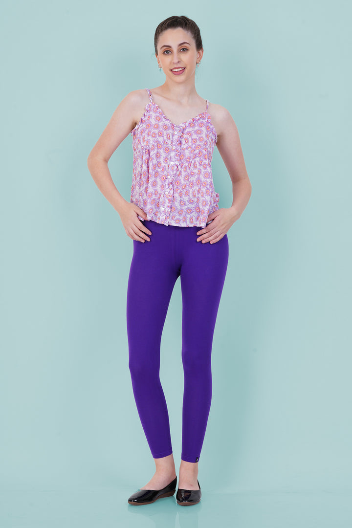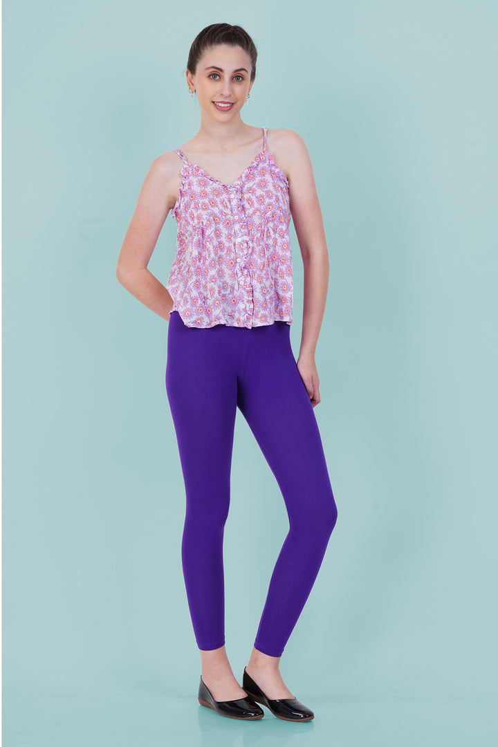 Achieve a rich and luxurious look with our Deep Purple cotton Anklelength leggins. Pair them with Indian Flower-inspired accessories for an opulent style.