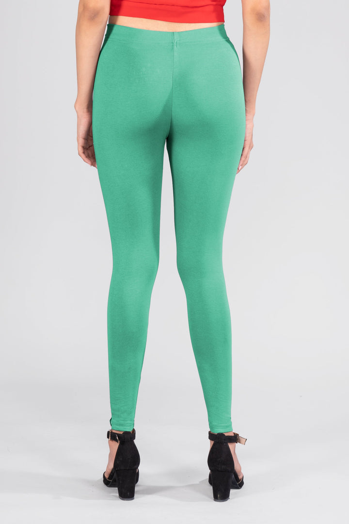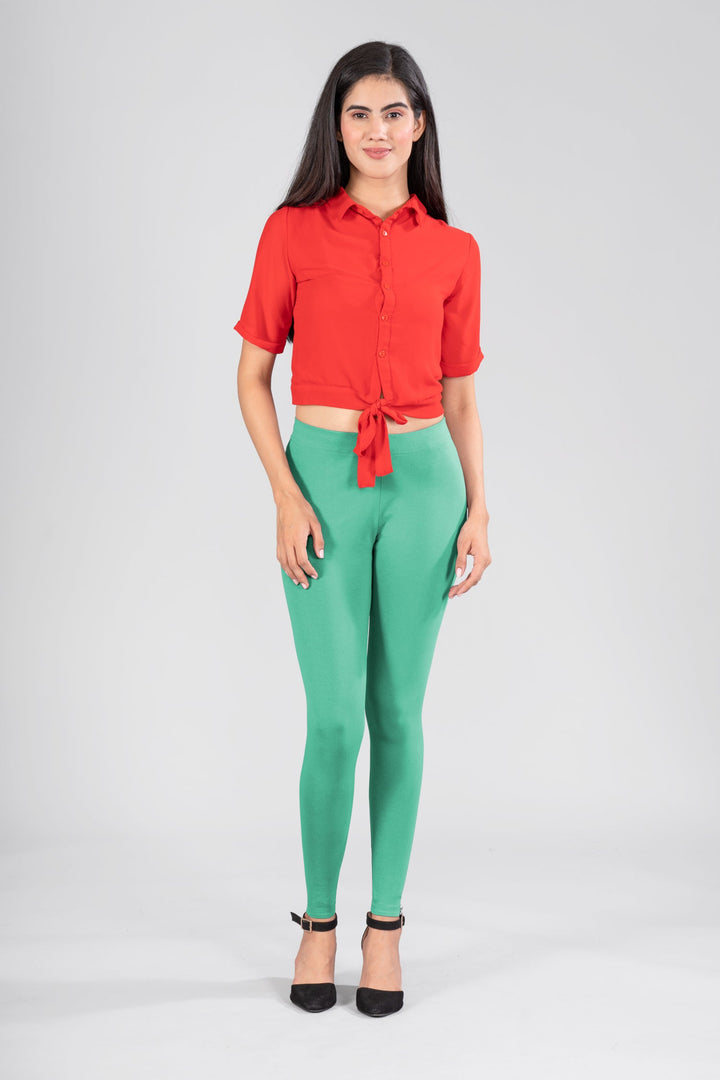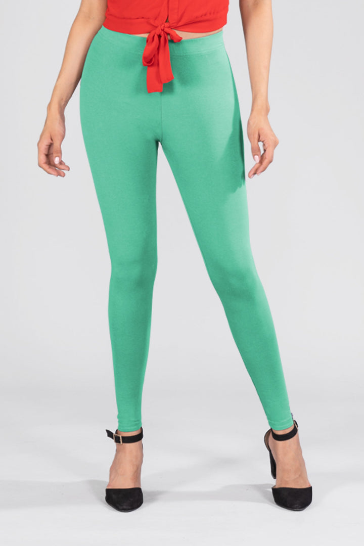 Embrace nature's beauty with our Malachite Green cotton Anklelength leggins. Pair them with Indian Flower prints for a harmonious and refreshing style.