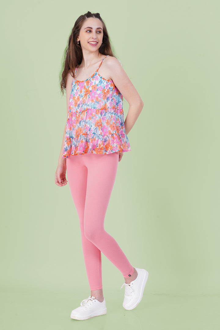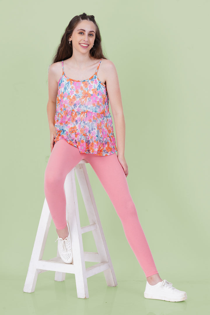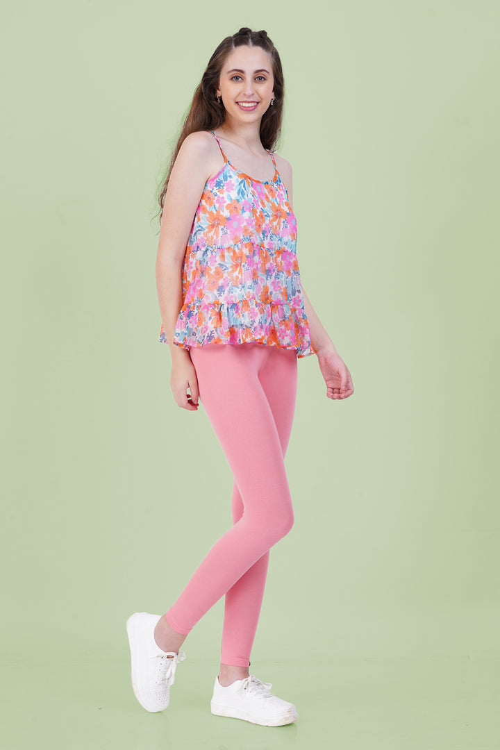 Add a soft and romantic touch with our Tea Rose cotton Anklelength leggins. Combine them with Indian Flower accessories for an elegant and feminine look.