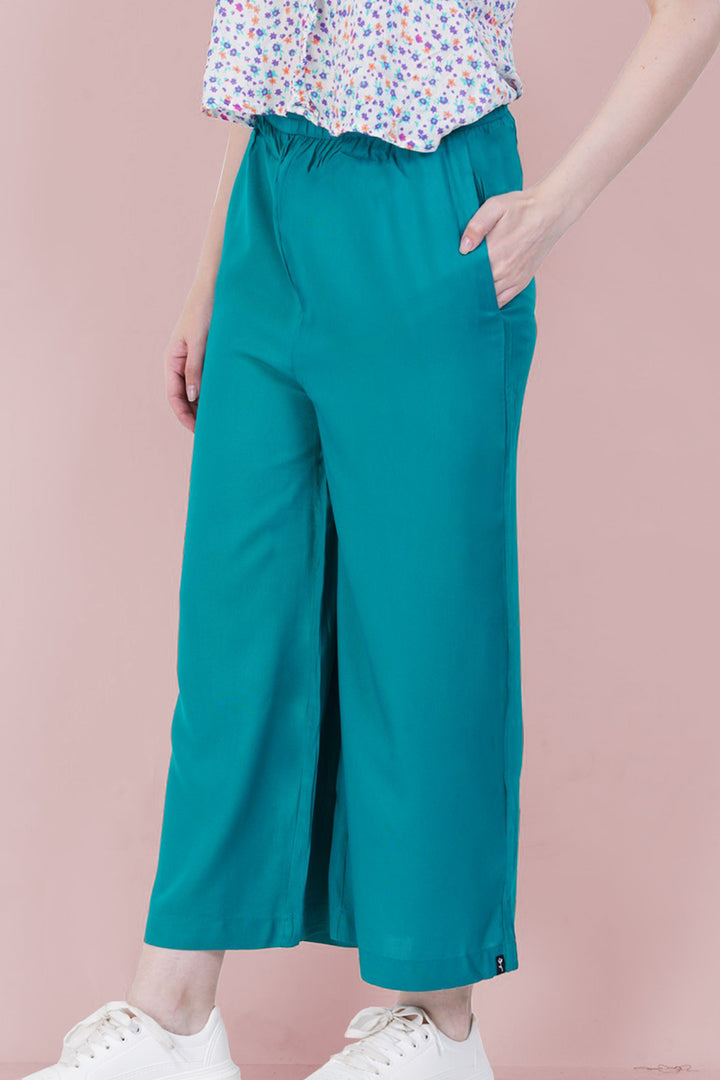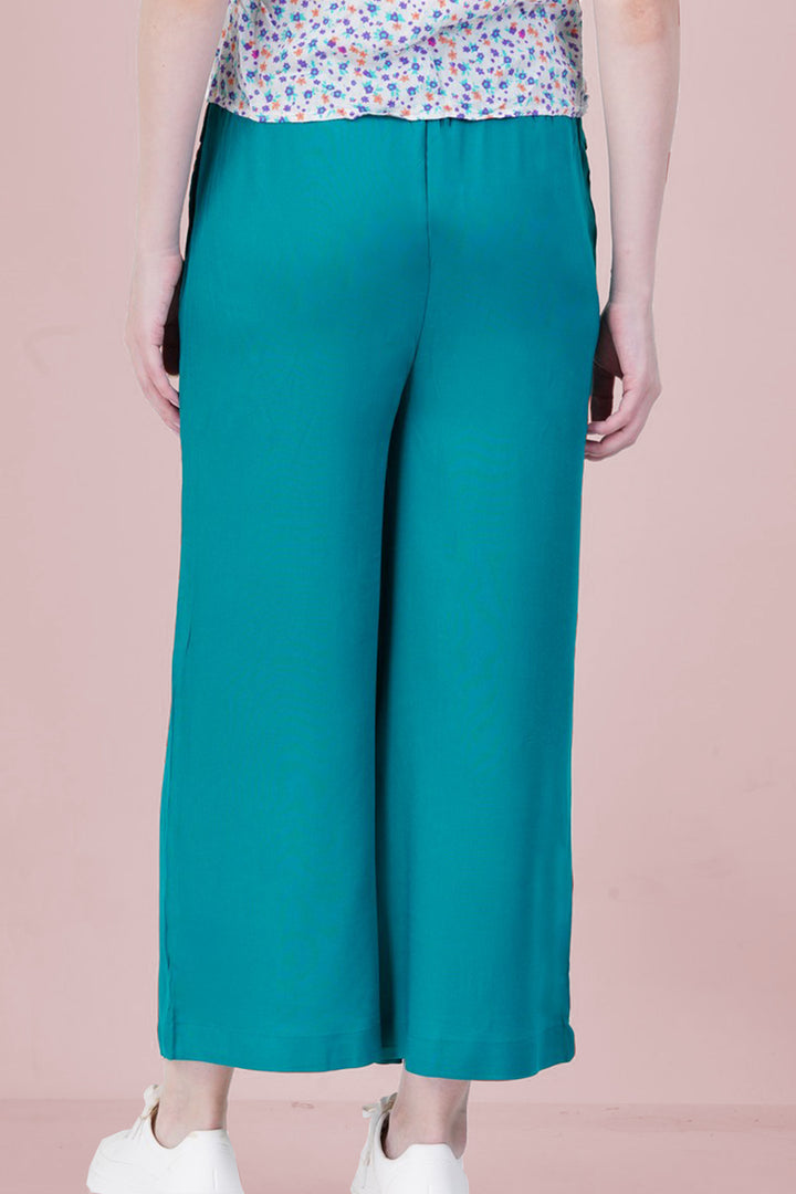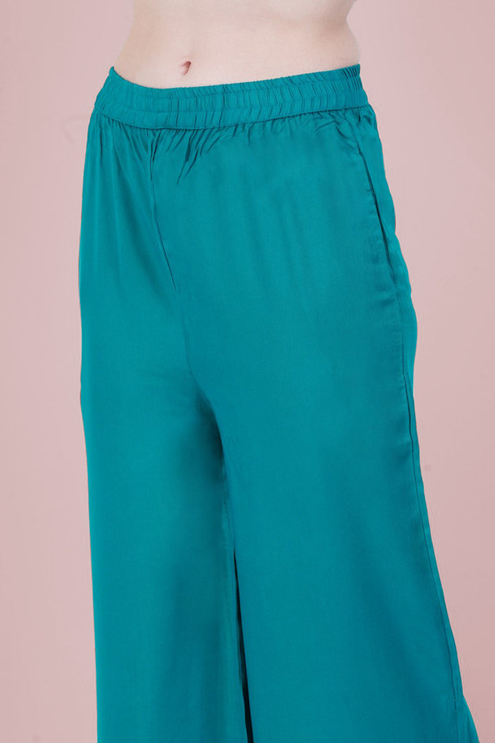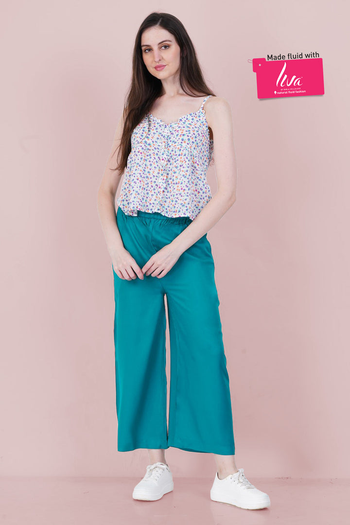 Step Into A World Of Fantasy With Our Soul Blue Rayon Palazzo, Inspired By The Lush Shades Of Indian Fantasy Flowers. These Palazzos Add A Touch Of Whimsy To Your Style.