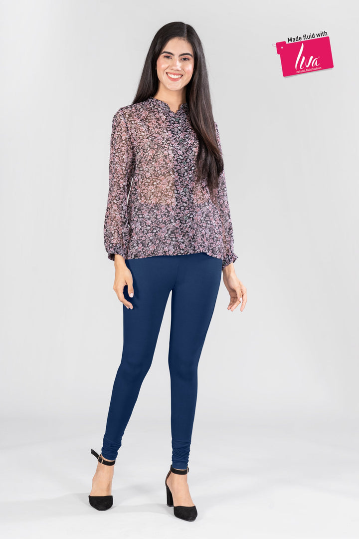 Step into a world of nostalgia with our Vintage Blue leggings, evoking memories of vintage Indian textiles. These leggings are a timeless addition to your wardrobe.
