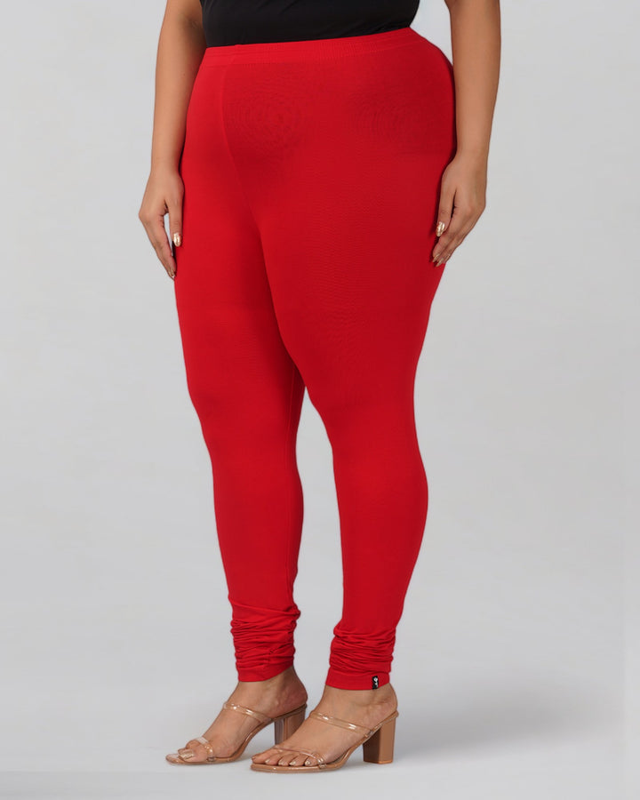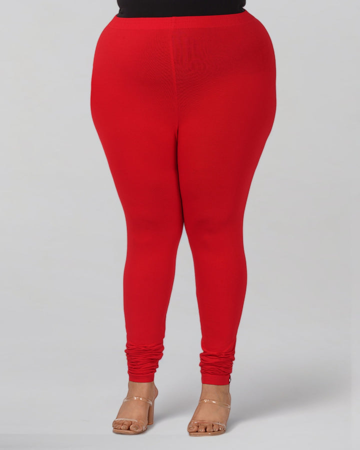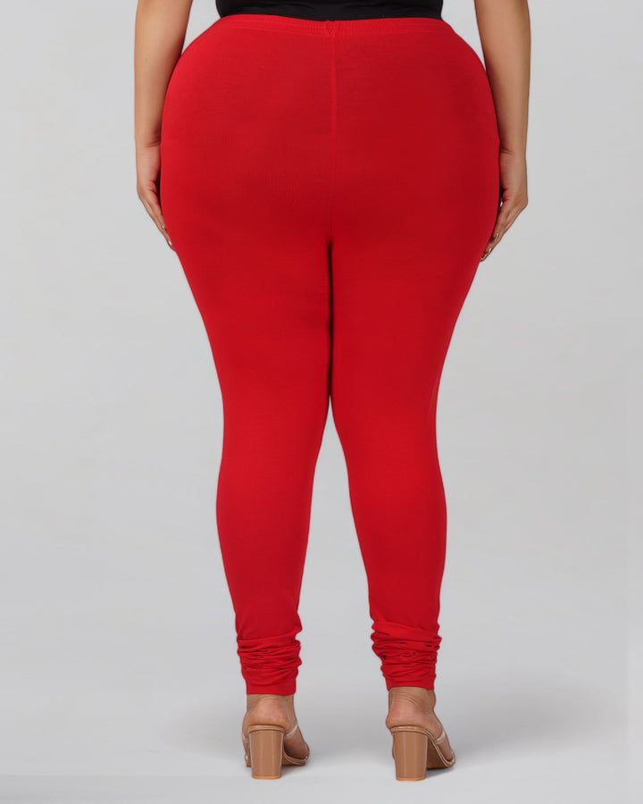 Red Plus Size Cotton Churidar Leggings