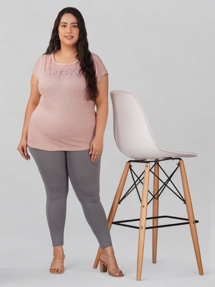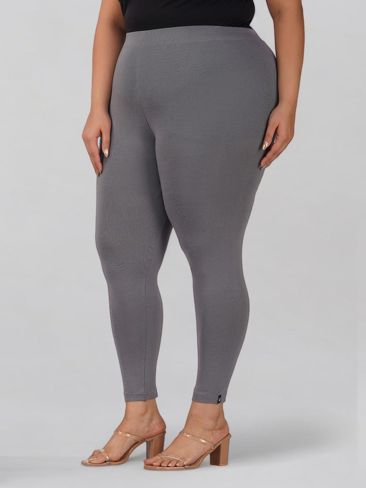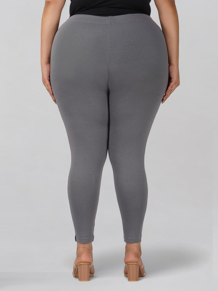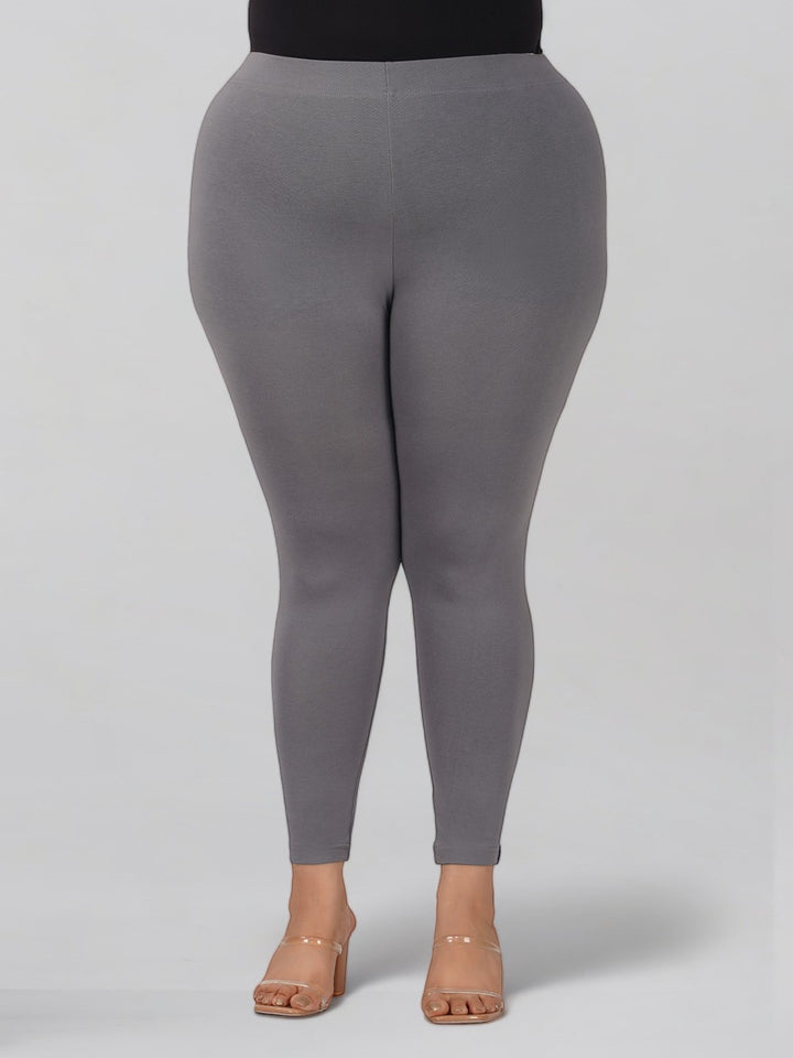 Grey Plus Size Cotton Ankle Leggings