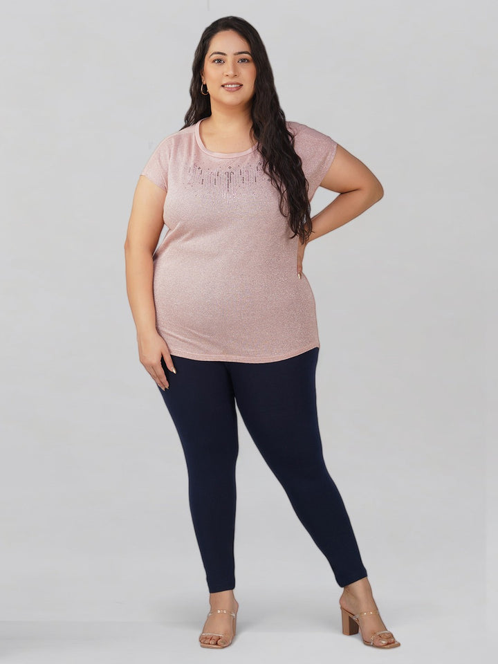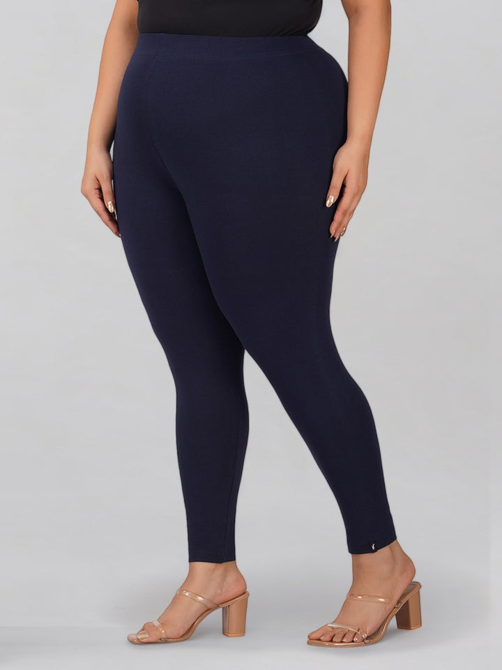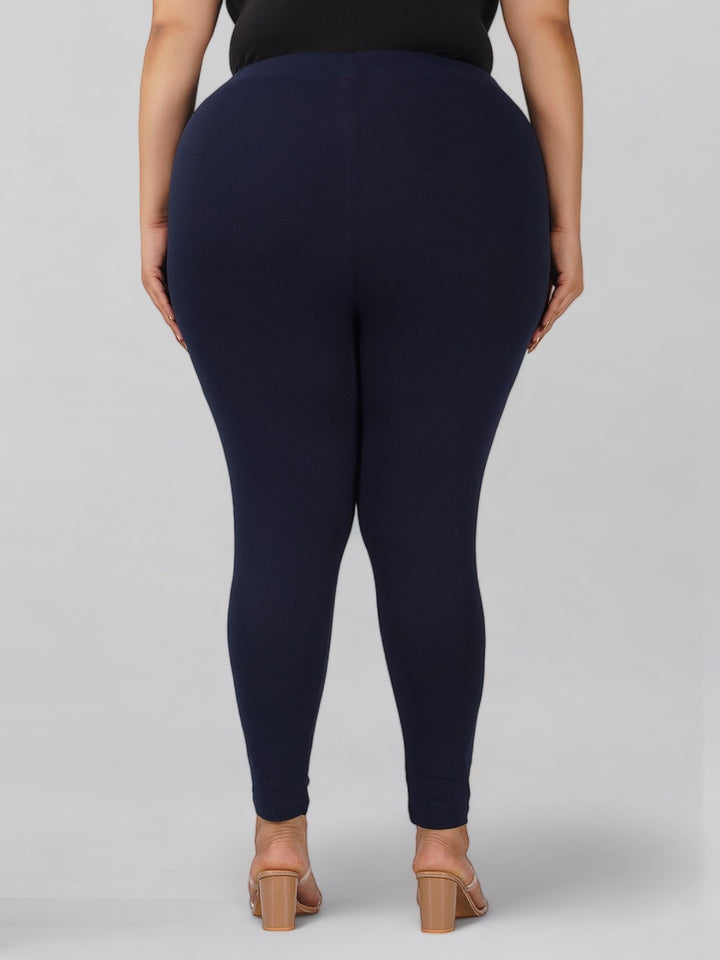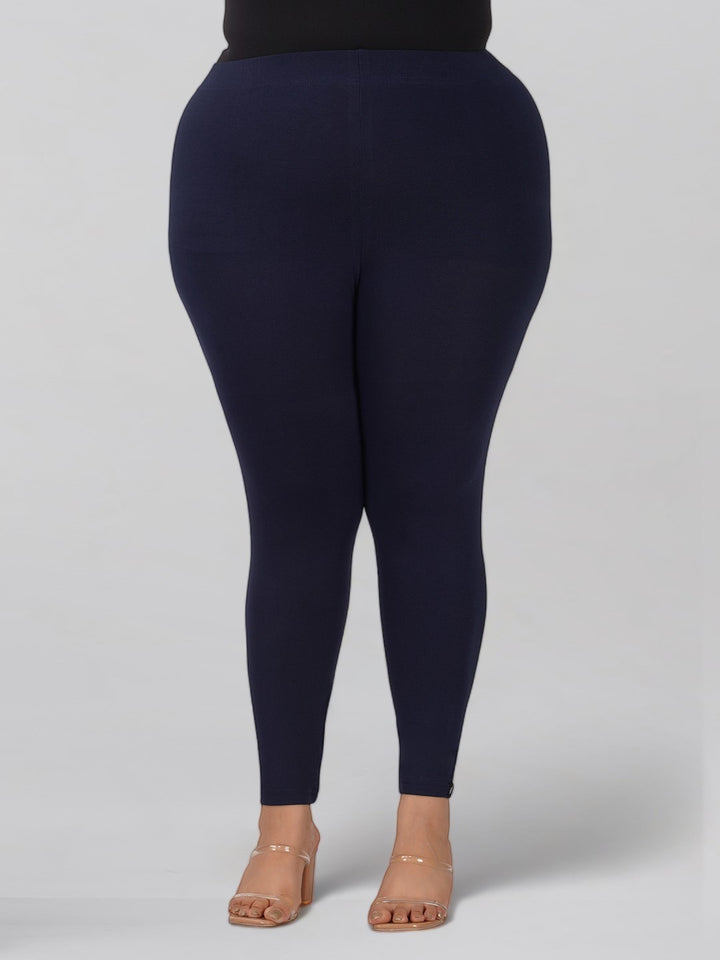 Navy Plus Size Cotton Ankle Leggings