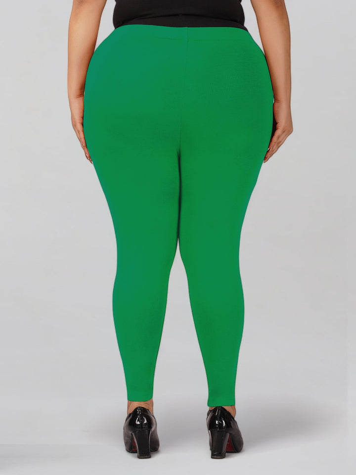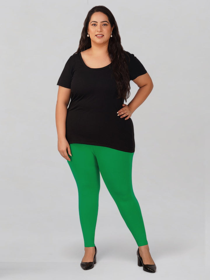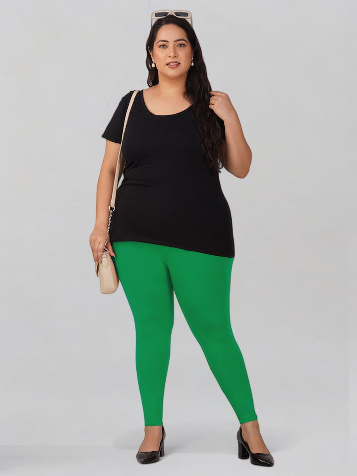 New Neon Green Plus Size Cotton Ankle Leggings