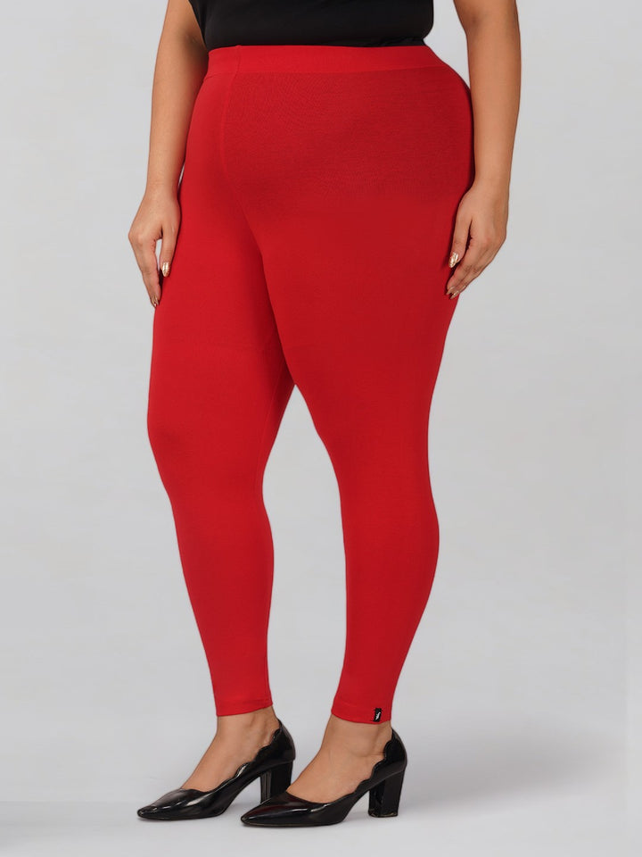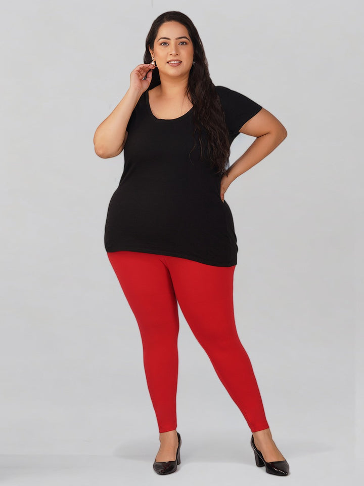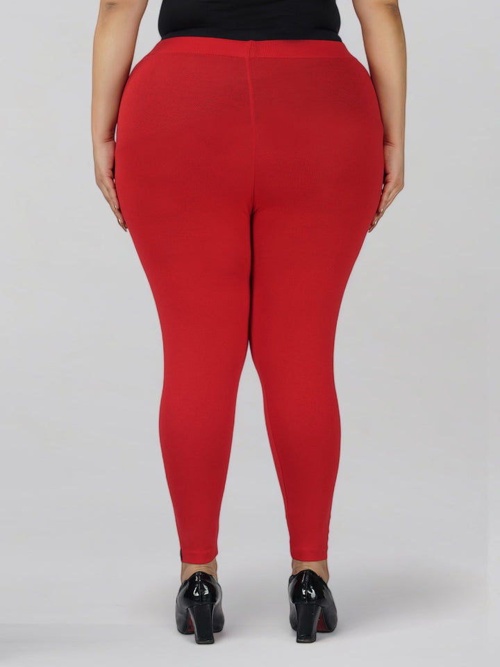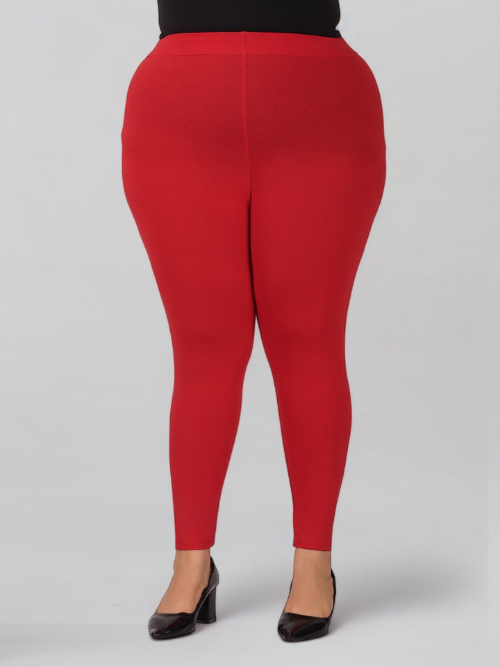 Red Plus Size Cotton Ankle Leggings