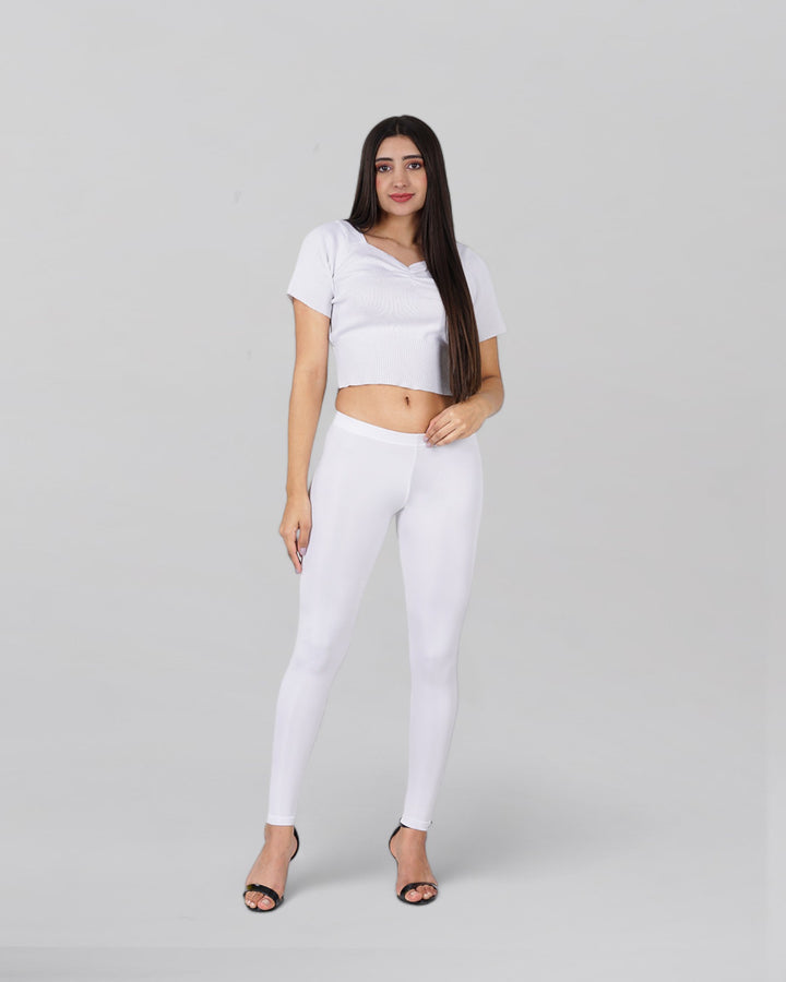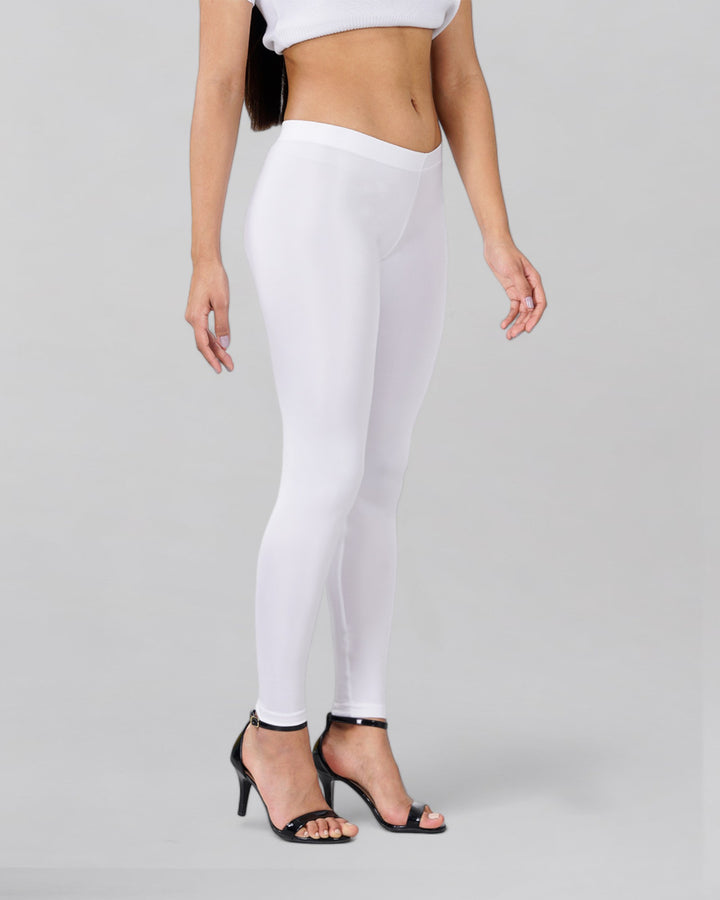 Expertly crafted White Delight Shimmer Leggings combine sophisticated style with functional performance. The subtle shimmer effect elevates your athletic or casual ensemble while maintaining a sleek silhouette. Designed with premium stretch fabric for unrestricted movement and all-day comfort. Perfect for yoga, fitness activities, or pairing with tunics for an effortlessly chic look.