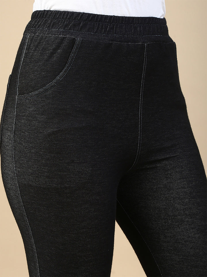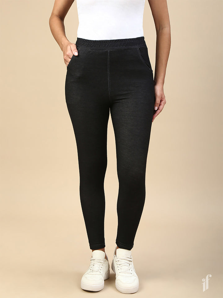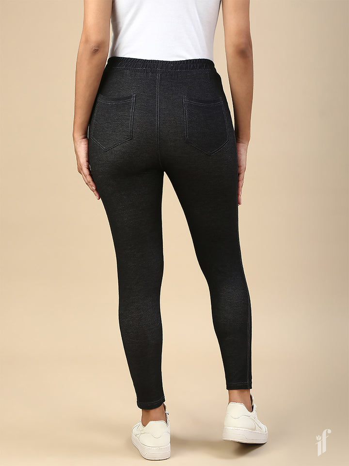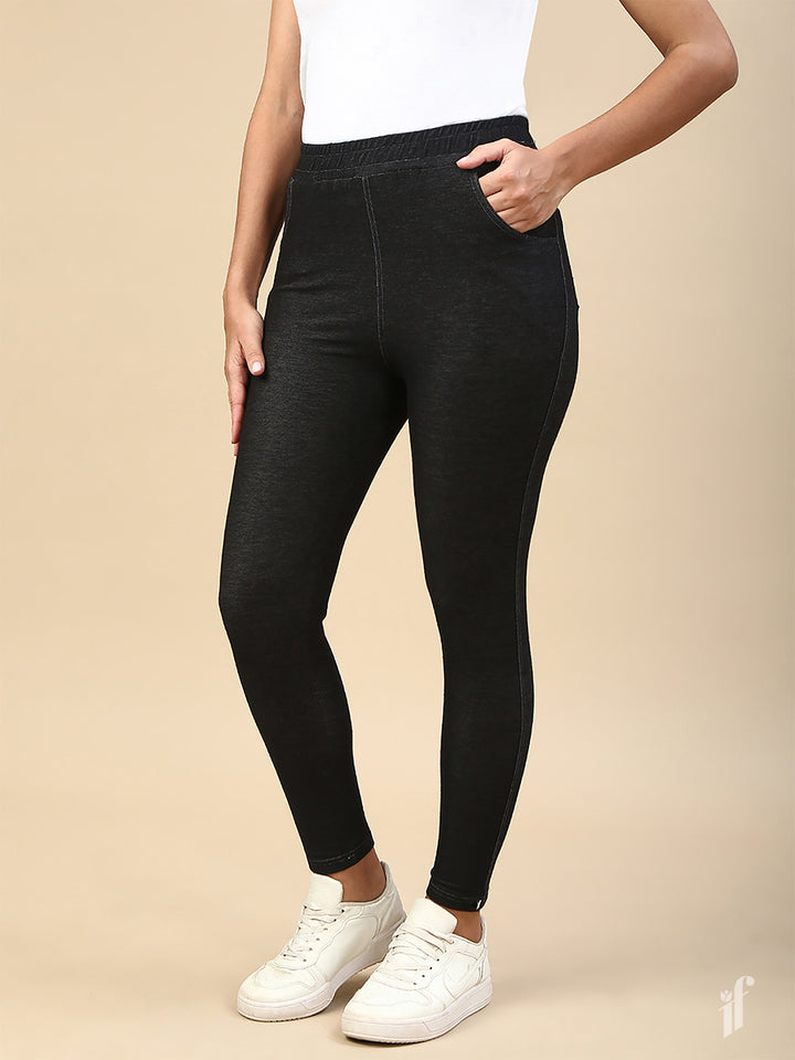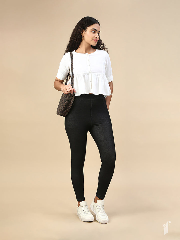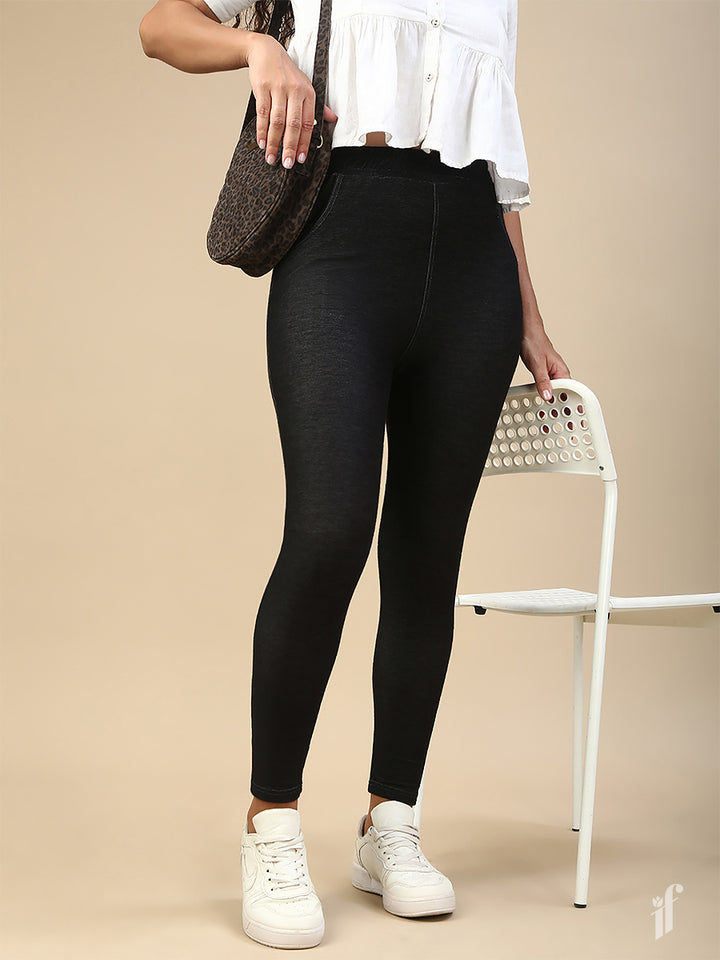 Experience the perfect blend of comfort and style with these Black Jeggings. Designed to offer a smooth, breathable fit, they provide a skinny, tight silhouette that enhances your shape without compromising on comfort. Crafted to mimic the classic denim feel, these jeggings deliver the look of jeans with the flexibility of leggings, making them ideal for all-day wear.